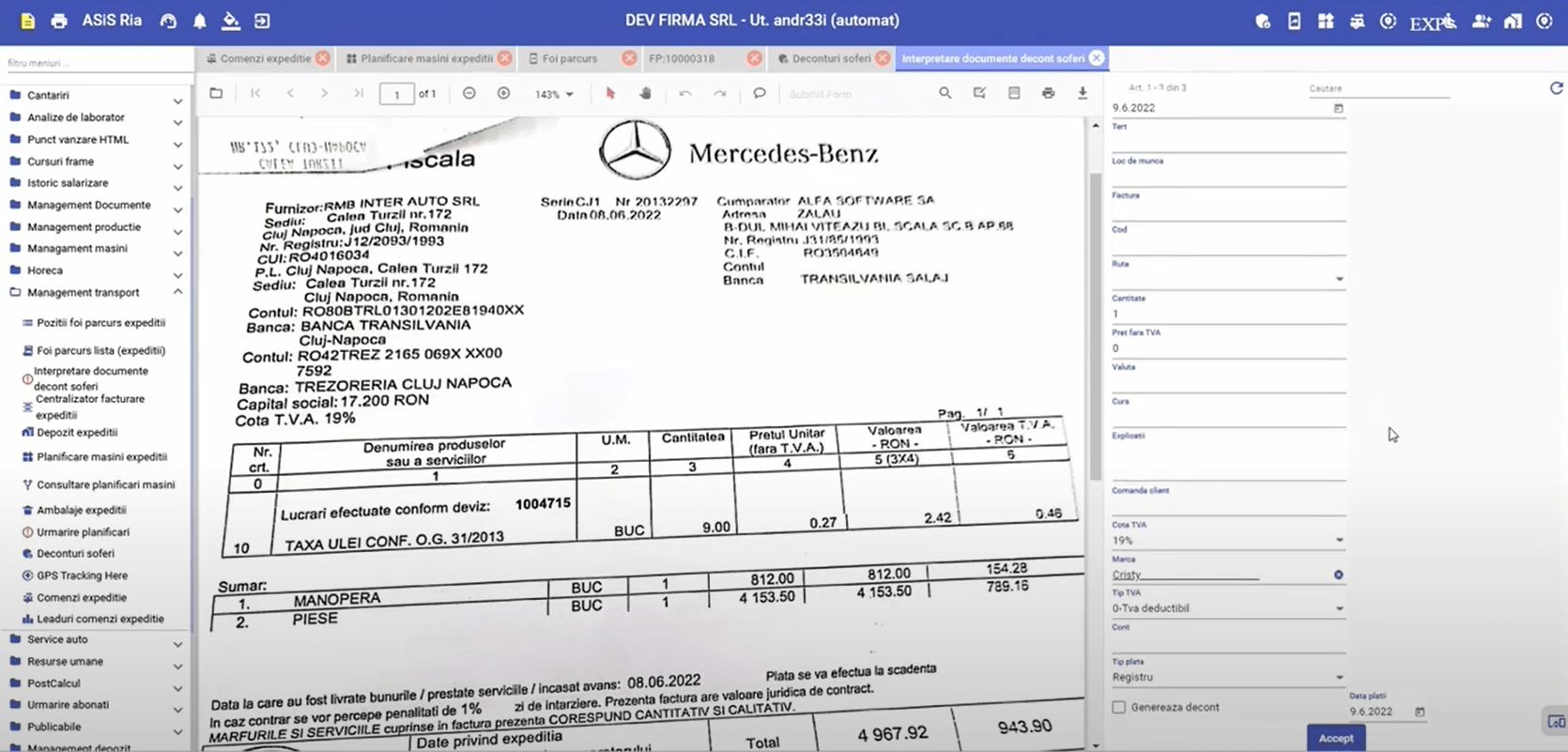 Fii mai eficient prin introducerea automată a documentelor de transport în sistem prin transcrierea informațiilor din pozele documentelor (tehnologia Optical Character Recognition) și salvează documentele securizat în cloud pentru access ușor de oriunde și în orice moment.